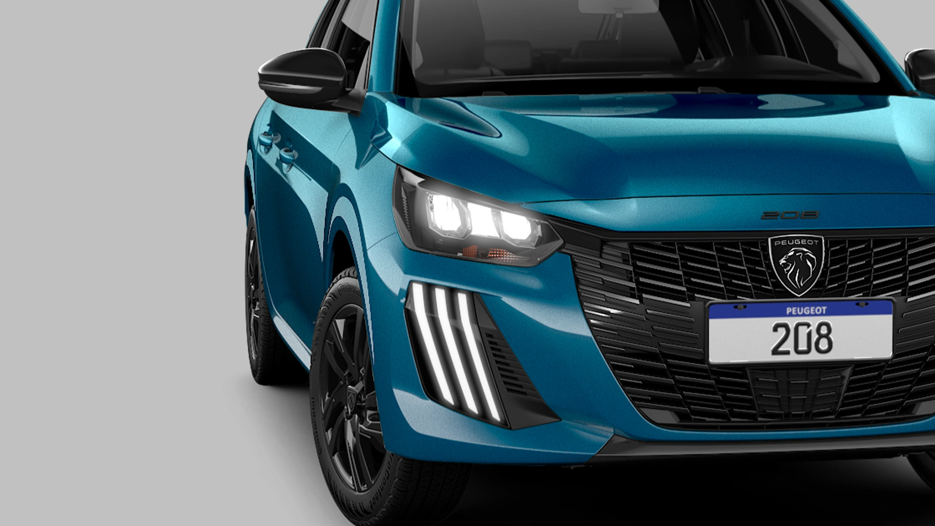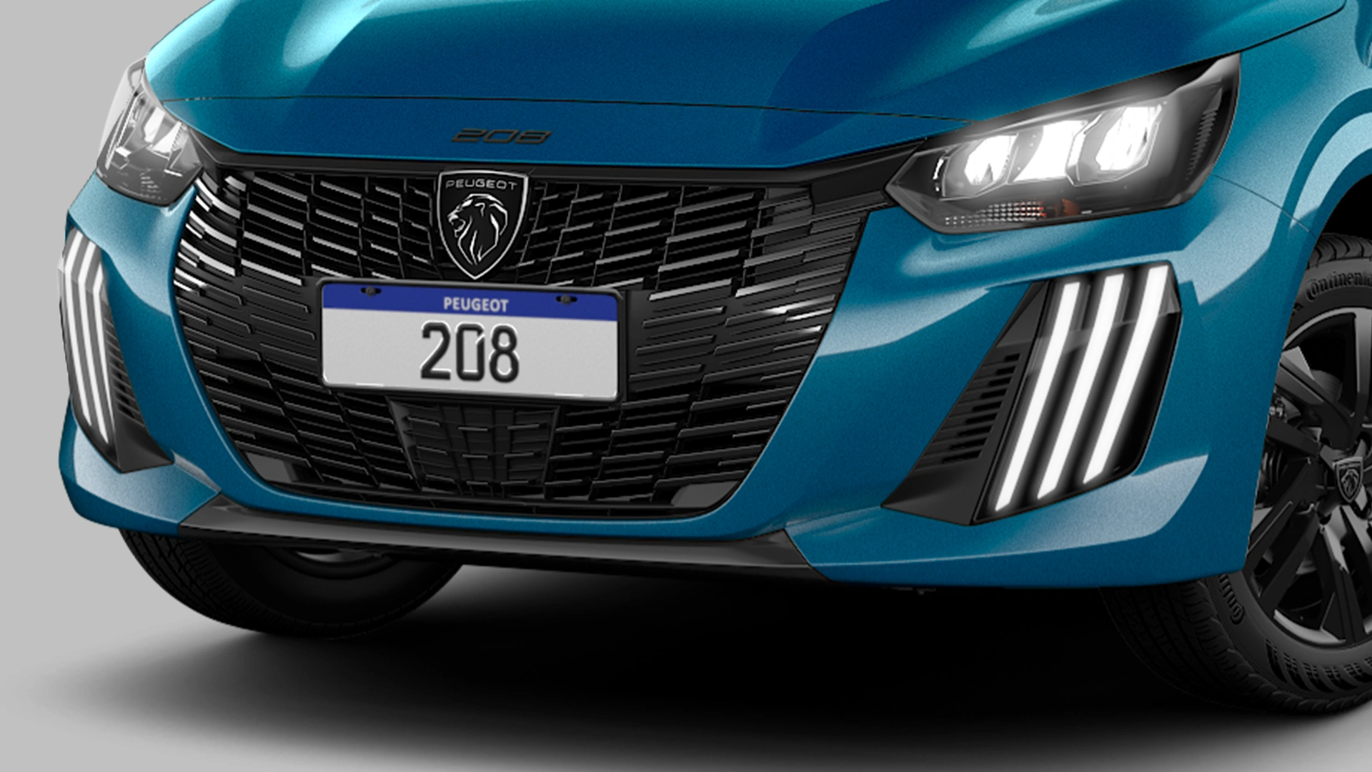 O Novo Peugeot 208 Hybrid AT carrega uma identidade luminosa, com faróis full LED em formato de garra de leão e luzes DRL a LED.
