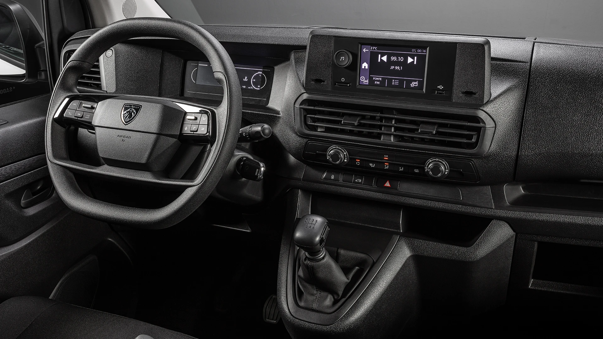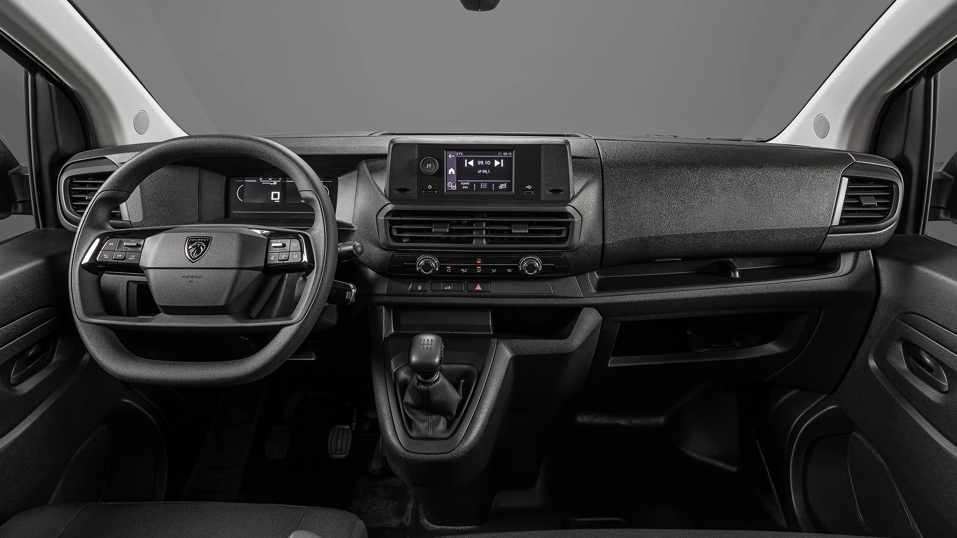 O volante multifuncional com comandos integrados oferece praticidade ao condutor, enquanto o painel digital fornece informações essenciais de forma clara e moderna, reforçando a proposta de tecnologia embarcada no Novo Peugeot Expert.